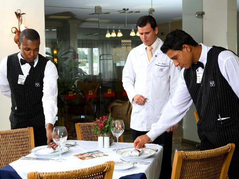Cuidando do ambiente do restaurante.